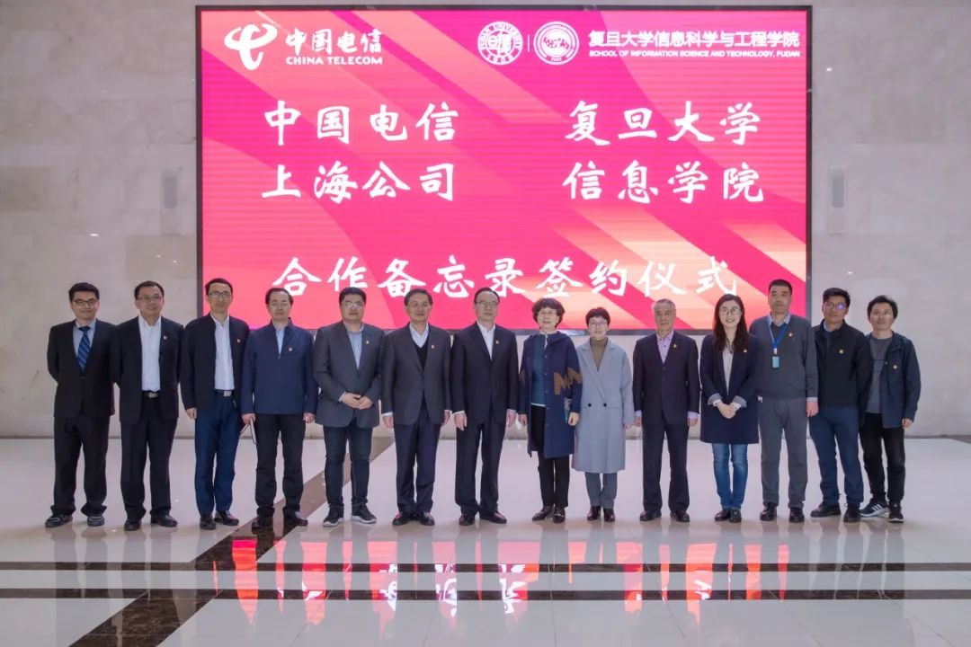 为全面贯彻科技强国、网络强国、数字中国战略,2021年3月31日,中国电信上海公司与自拍偷拍 信息科学与工程学院举行了合作签约仪式。参加仪式的有中国电信上海公司党委书记、总经理马益民、副总经理雷宇、上海公司总工程师室党支部书记傅志仁等,自拍偷拍 信息学院党委书记闫华、院长迟楠、副院长詹义强、副书记郭翌、通信系党支部书记刘鹏、副主任王海鹏、研究员张俊文等,仪式由詹义强副院长主持。